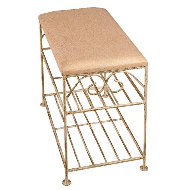 Кований пуф – банкетка з полицями для взуття “рондо”.