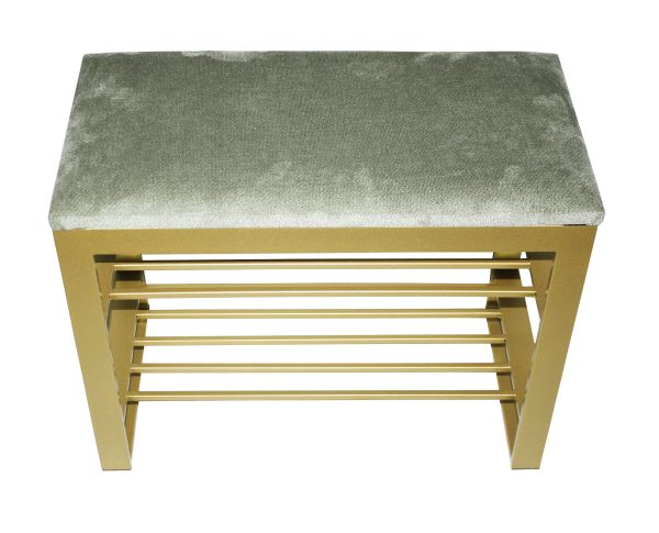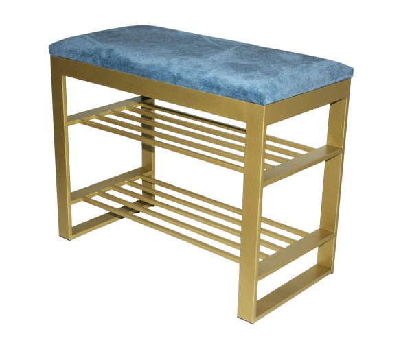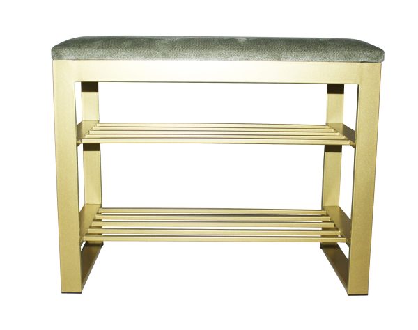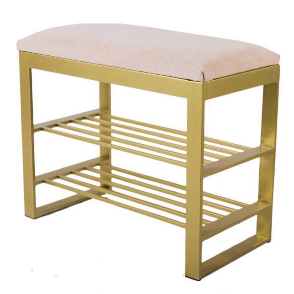 Чудовий м’який та стильний кований пуф, для вашої затишної передпокою чи вітальні. Metal Art це великий вибір якісних та доступних за ціною пуфів, саме такого м’якого та стильного предмета меблів не вистачало у вашій затишній передпокої чи вітальні. У більш стриманий та строгий дизайн чудово впишуться скромно оформлені компактні моделі. Кований пуф – банкетка з полицями для взуття. Каркас – метал. Фарбування НОВИНКА золотий колір. Оббивка тканини.