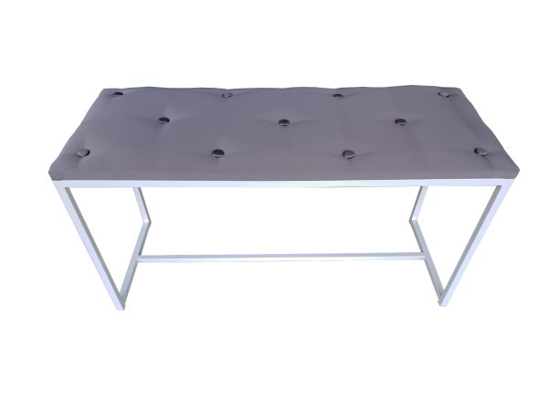 Чудовий м’який та стильний кований пуф, для вашої затишної передпокою чи вітальні. Ця банкетка чудово впишеться в затишну спальню або передпокій. Банкетка з м’яким сидінням. Каркас – метал. Фарбування білого кольору. Оббивка сидіння-тканина з ґудзиками.