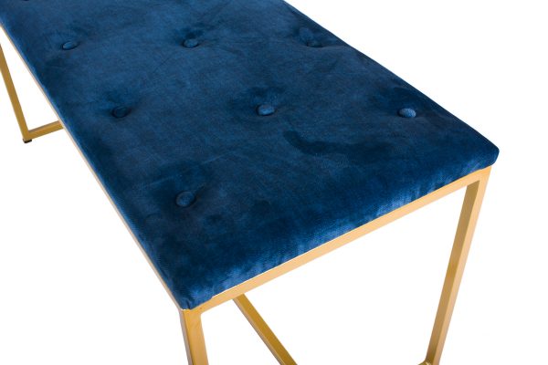 Чудовий м’який та стильний кований пуф, для вашої затишної передпокою чи вітальні. Ця банкетка чудово впишеться в затишну спальню або передпокій. Банкетка з м’яким сидінням. Каркас – метал. Фарбування полімерне-золотого кольору. Оббивка сидіння-тканина з ґудзиками.