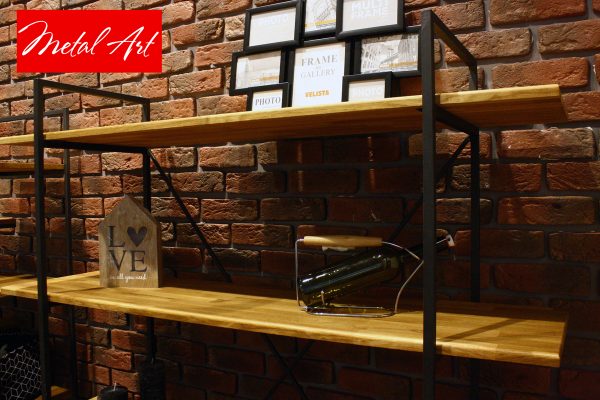 Доступні матеріали полиць при замовленні – ЛДСП та дубовий щит. Стелаж можна замовити за індивідуальними розмірами та вибрати колір фарбування каркасу.