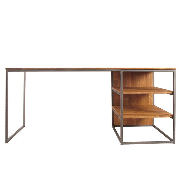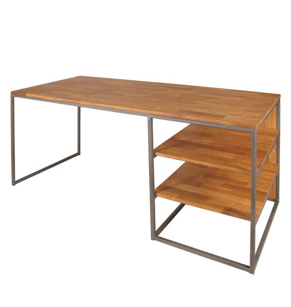 Стильний, якісний офісний стіл з дерев’яною стільницею та міцними полицями.