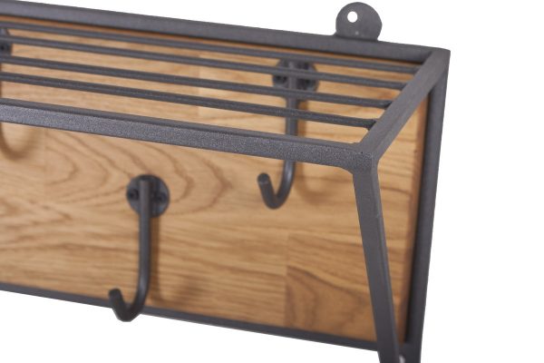 A hanger with hooks and a shelf for hats. Buy Tube 10×10. Oak shield.