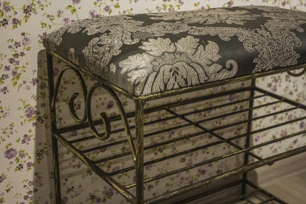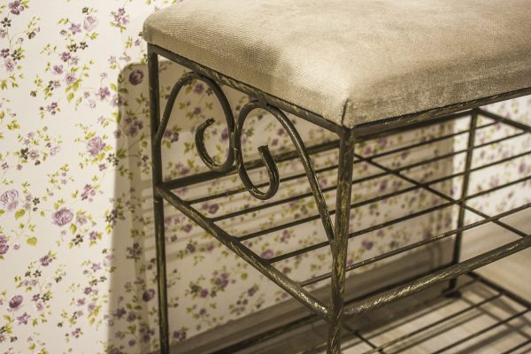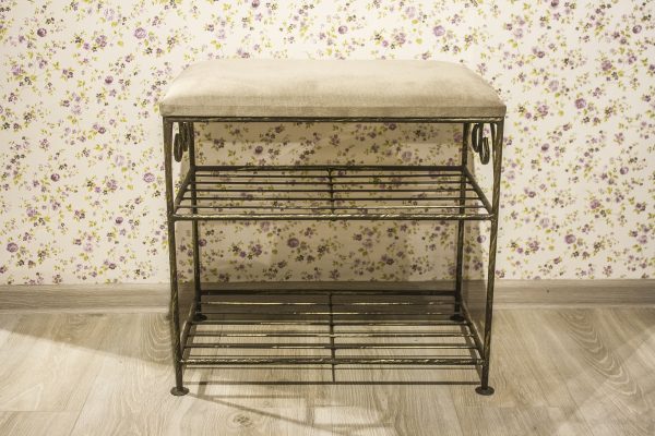 Wrought pouf – banquette with shelves for shoes “rondo”.