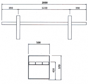 length – 1800 mm, width – 500 mm, height – 570 mm