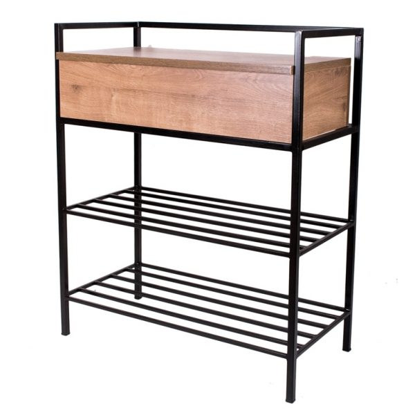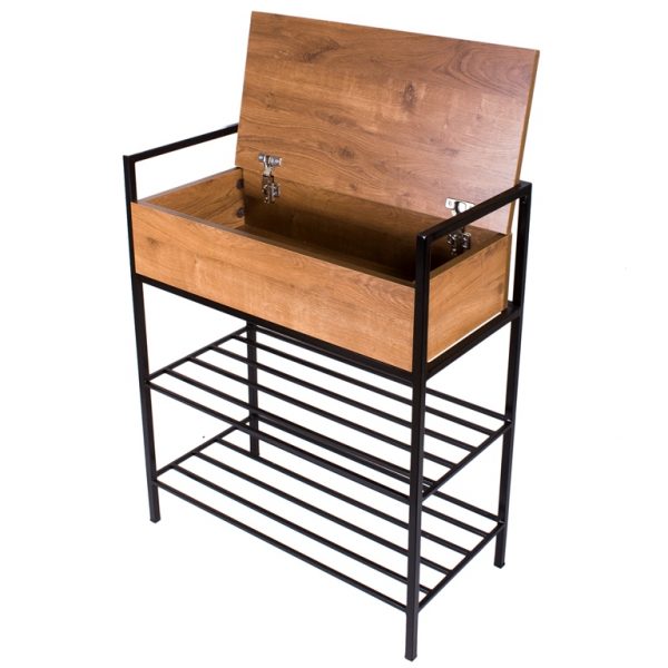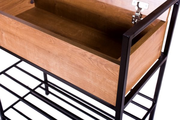A stylish and practical sideboard for your hallway or living room. The cabinet has two shelves for shoes and an upper folding box. The frame is metal. Black paint. LDSP Oak antique