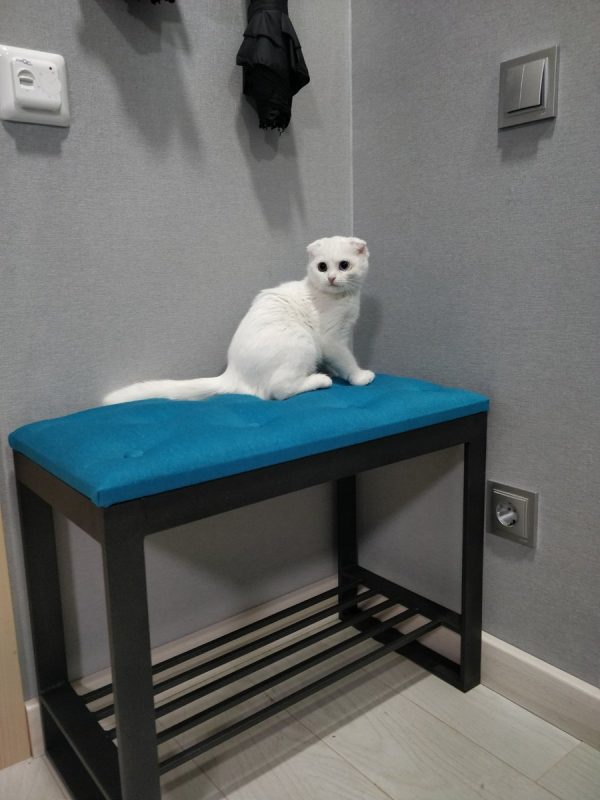 A wonderful soft and stylish wrought pouf for your cozy hallway or living room. Metal Art is a large selection of high-quality and affordable poufs, just such a soft and stylish piece of furniture was missing in your cozy hallway or living room. Modestly designed compact models fit perfectly into a more restrained and strict design. Wrought pouf – a banquette with shelves for shoes. The frame is metal. Black paint. Upholstery fabric.